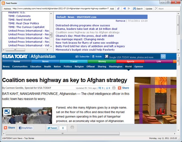 Easy-to-use RSS/Atom Feed Reader with search function: Keeps you in touch with your favourite News Feeds (editable collection of news sites included)