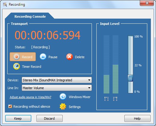 Total Recorder Editor Pro can make high-quality audio recordings from any internal & external source in real-time. It helps transfer tapes, LPs, live performances, Internet radio, TV, DVD, or any other sound source to your hard drive. The software helps protect your valuable recordings--just set the sound source, the recording quality, and volume, then start recording.