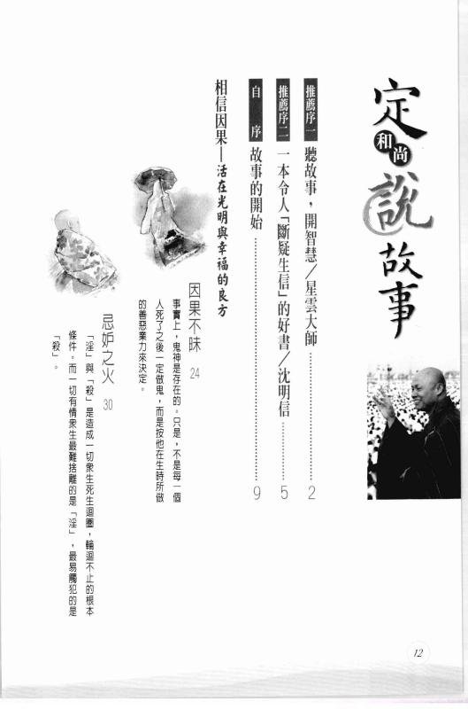: 推荐序一 听故事,开智慧 推荐序二 一遍令人“断疑生信”的好书 自序 故事的开始 相信因果——活在光明与幸福的良方 因果不昧 忌妒之火 积善之家 必有余庆 欠债还债 无债不来 宿业能转 心灵加油站——相信因果 …… 心灵加油站——慈悲喜舍