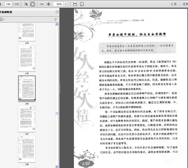 : 女人经 “精”典篇 天使的性格,精灵的气质 古灵精怪刁钻可爱,凡事不按常理出牌 性感媚惑,妖妖娆娆释放女人的无限风情 “精”典私房话:别以为只有“丰乳肥臀”的女人才性感 羞涩似一朵水莲花,让男人心驰神往 直爽如火锅,麻辣鲜烫叫男人欲罢不能 天真不是幼稚,而是一种游离尘世的浪漫 温柔也是一把刀,散发着致命的诱惑 成熟是温暖的港湾,人人都愿意停靠 优雅娴静,诠释出无言的脱俗 桀骜不羁,只有优秀的骑士才能“驾驭” 自信是一面旗帜,把好运招致旗下 女人娇气有理,可爱多过刁蛮 “精”典私房话:静观其变,让男人成为透明人 做快乐的妖精老婆 女人精:小S——妖女当道 星座花语:十二星座的性格奥秘 女人经 精心篇 爱情本身就是一个圈套,就看你能不能把幸福套牢 男人最爱“复合女” 把男人出轨的意图淹没在你的醋缸里 “精”典私房话:吃醋要适量,别把自己浸泡在醋缸里 别拿暧昧当爱情 一脚踢飞劣质男人 不要因为寂寞而恋爱 女人别把青春耗在等待上 别告诉男人你有多爱他 不漂亮,爱情照样不“打折” 动什么别动别人的爱情 略施小计为爱情保鲜 像情人一样满足男人的欲望 别让爱像滴漏里的沙子一样悄然流失 夫妻之间不打持久战 别让婆媳矛盾毁了你的婚姻 小人精:张柏芝——话题妖精 小测试:你在爱情中的年龄有多大 女人经 精致篇 要想生活更精点,先爱自己多一点 女人经 精明篇 别说女人头发长见识短,见识过“九经真经”吗 女人经 精细篇 精打细算搞定你的钱,别让钱来搞定你 女人经 精彩篇 生活不是白开水,要活就精得出彩 女人经 精灵篇 女人精就应该有这样的“妖”功