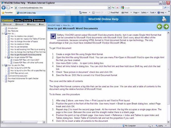 Full-function web help creation. (Contents, Index, Search and Bookmark)