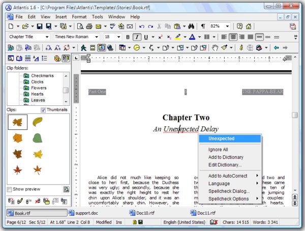 The AutoCorrect feature of Atlantis has fully customizable multilingual options, and will dramatically simplify your word processing life. It combines flexibility with power for unparalleled control over the typing and formatting of documents. Some of the Atlantis AutoCorrect functions are still unheard-of in today's top-end word processors. Texts are proofread in the background "As-You-Type", or, optionally, when typing is complete.