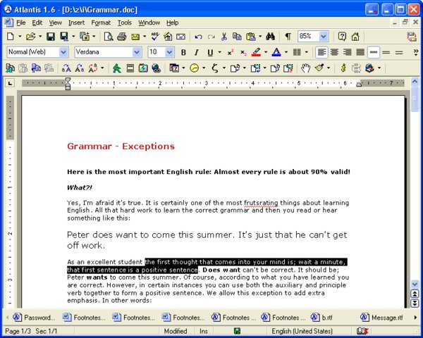 bookmarks, footnotes & endnotes, etc, all are a breeze with Atlantis.