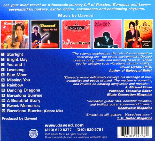 现居住在洛杉矶的吉他手 Daveed 戴维德,自2000年出道以来,在国际上的知名度不断提升。他的音乐经常出现在世界各地的电视台和电台中,包括CBS与ABC的特色频道“The Weather Channel”;他的作品还被200多个最畅销的瑜伽、普拉提、冥想、愈合和太极的影片收录其中;此外,他的音乐也定期出现在不同国家的特色广告中。