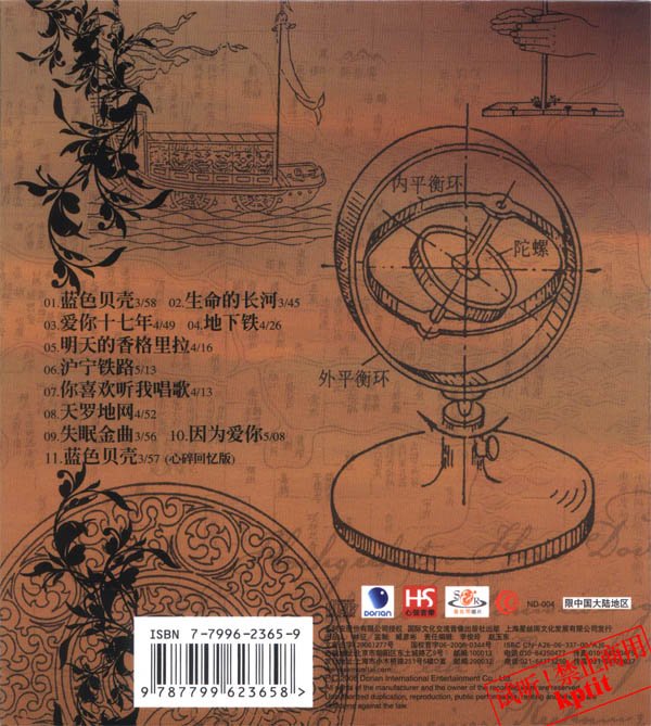 : 1.蓝色贝壳 02.生命的长河 03.爱你17年 04.地下铁 05.明天的香格里拉 06.沪宁铁路 07.你喜欢听我唱歌 08.天罗地网 09.失眠金曲 10.因为爱你 11.蓝色贝壳(心碎回忆版)