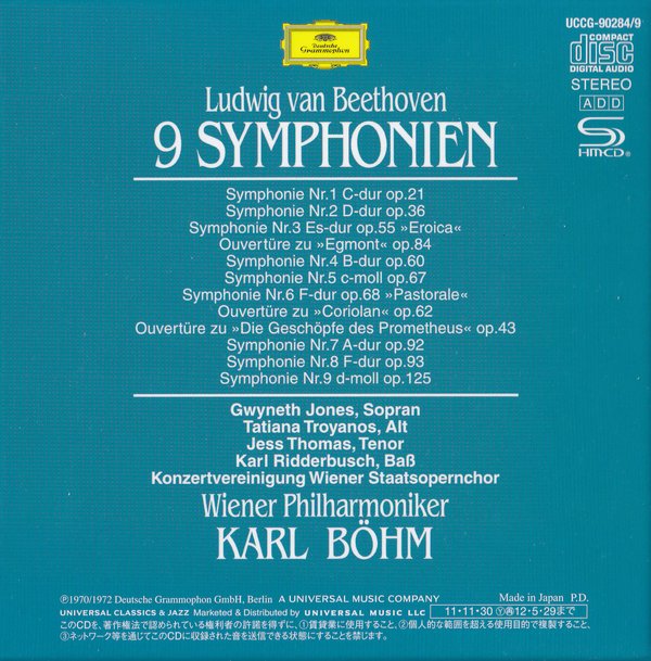 : No.1&2 1.Sym No.1 in C, Op.21: 1. Adagio Molto - Allegro Con Brio 2.Sym No.1 in C, Op.21: 2. Andante Cantabile Con Moto 3.Sym No.1 in C, Op.21: 3. Menuetto. Allegro Molto E Vivace - Trio 3.Sym No.1 in C, Op.21: 4. Finale. Adagio - Allegro Molto E Vivace 4.Sym No.2 in D, Op.36: 1. Adagio - Allegro Con Brio 5.Sym No.2 in D, Op.36: 2. Larghetto 6.Sym No.2 in D, Op.36: 3. Scherzo. Allegro - Trio 7.Sym No.2 in D, Op.36: 4. Allegro Molto" No.3 1. Symphony No. 3 In E Flat Major, Op. 55 'Eroica': I Allegro con brio 2. Symphony No. 3 In E Flat Major, Op. 55 'Eroica': II Marcia funebre: Adagio assai 3. Symphony No. 3 In E Flat Major, Op. 55 'Eroica': III Scherzo: Allegro vivace 4. Symphony No. 3 In E Flat Major, Op. 55 'Eroica': IV Finale: Allegro molto 5. Overture 'Egmont', op. 84 No.4&5 1. Symphony No. 4 In B Flat Major, Op. 60: I Adagio - Allegro vivace 2. Symphony No. 4 In B Flat Major, Op. 60: II Adagio 3. Symphony No. 4 In B Flat Major, Op. 60: III Allegro vivace 4. Symphony No. 4 In B Flat Major, Op. 60: IV Allegro ma non troppo 5. Symphony No. 5 In C Minor, Op. 67: I Allegro con brio 6. Symphony No. 5 In C Minor, Op. 67: II Andante con moto 7. Symphony No. 5 In C Minor, Op. 67: III Allegro 8. Symphony No. 5 In C Minor, Op. 67: IV Allegro No.6 1. Sym No.6 in F, Op.68 'Pastorale': 1. Pleasant, Cheerful Feelings Awakened... 2. Sym No.6 in F, Op.68 'Pastorale': 2. Scene By The Brook: Andante Molto Moto 3. Sym No.6 in F, Op.68 'Pastorale': 3. Merry Gathering Of Country Folk: Allegro 4. Sym No.6 in F, Op.68 'Pastorale': 4. Thunderstorm: Allegro 5. Sym No.6 in F, Op.68 'Pastorale': 5. Shepherd's Song: Happy And Thankful Feelings... 6. Coriolan Overture, op.62 7.Prometheus Overture, op.43