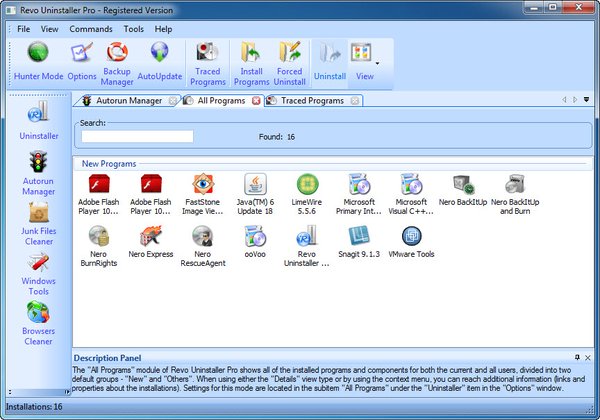 Revo Uninstaller是一款好用的专业卸载软件,能够帮助用户轻松的卸载所有的Windows应用程序,是一款不可多得的实用型系统工具。它能够代替Windows系统中的"添加/删除程序",除此之外,Revo Uninstaller (卸载软件)还包括其它一些实用的功能。例如:能够帮助你清除系统中的LJ文件,无用的Office临时文件,上网记录,系统启动项管理等。
