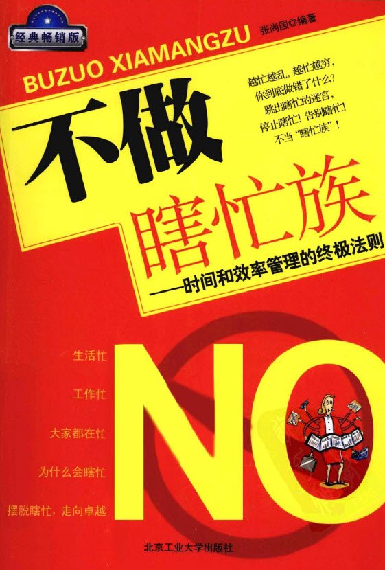 《不做瞎忙族:时间和效率管理的终极法则(经典畅销版)》:越忙越乱,越忙越穷!你到底做错了什么?跳出瞎忙的迷宫,停止瞎忙!告别瞎忙!不当“瞎忙族”! 忙。本是一种工作状态,但是为了得到上司的肯定,不少人成了“装忙族”;也有一些人是真忙,但是他们的.“忙”效率不高,对工作的实际意义不大,基本上可以称之为“瞎忙”,这种人也被称为“瞎忙族”。而不管是“装忙族”还是“瞎忙族”。他们都表示,其实心里很茫然……