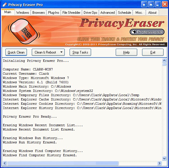 Privacy Eraser (Pro) is an Internet Eraser (Pro) that protects your Internet privacy by cleaning up all the tracks of Internet and computer activities. Our Internet Eraser Pro supports popular web browsers such as Internet Explorer MSN Explorer, Mozilla Firefox, Google Chrome, AOL, Apple Safari and Opera.