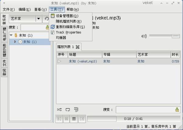 exaile的特色在于使用折叠菜单来选择专辑,同时也可以从维基百科读取歌手信息,支持歌曲黑名单。