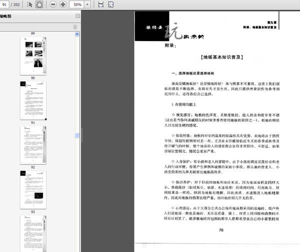 : 网络装修大学 网络、BBS论坛版主及几点装修提示 有几句话奉献给读者,希望对大家有所帮助 让天下人都知道百万家园监理自己家也装修 第一章——新房验收门 附录:新房验收的经验和常识 第二章——装修设计及风水浅谈 附录:家庭装修施工程序及注意事项门 第三章——选择施工队伍 附录:家居装饰合同补充条款 第四章——选择水电改造 附录:水电改造施工标准 第五章——施工现场 附录:监理是做什么的 第六章——瓷砖的选择 附录:瓷砖的基础知识 第七章——橱柜设计及选择 附录:橱柜选择的基础知识 第八章——吊顶的选择与应用 附录:铝扣板的挑选及安装验收 第九章——地板考察 附录:地板基本知识普及 第十章——正确选择使用地板伴侣 附录:地表以上1米内的生死空间 第十一章——地板安装过程实录门 附录:地板铺装过程中常见误区及科学点评 第十二章——木门的选择及安装过程实录 附录:先装地板还是先装门门 第十三章——外篇:装修完毕效果展播 第十四章——外篇:侧吸烟机现场实验 第十五章——外篇:浴柜说明现场图解 第十六章——外篇:塑钢门窗购买技巧 第十七章——外篇:春天家私效果赏析门 第十八章——外篇:家具环保与否剖析门 第十九章——外篇:家居污染检测治理 第二十章——外篇:互助验收实例选登