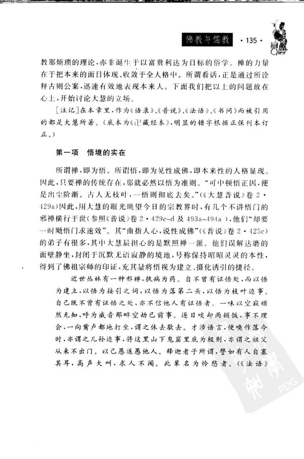 在佛教各宗派之中最直截了当地强调掌握“本来面目”和“本分田地”的是禅宗,而为禅宗的思想基础做出最大贡献的是“本来性一乘教”的华严学。《佛教与儒教》从华严学开始执笔撰写,原因就在于此,但《佛教与儒教》之所以把宗密的《圆觉经》的哲学有意识地与《华严经》的哲学相提并论,是因为笔者认为“本来性一乘教”在这里体现出鲜明的曲折,建立一套面貌迥然不同的哲学体系,准确地把握这种曲折和变异,对理解后来的宋明思想变迁提供了重要线索。