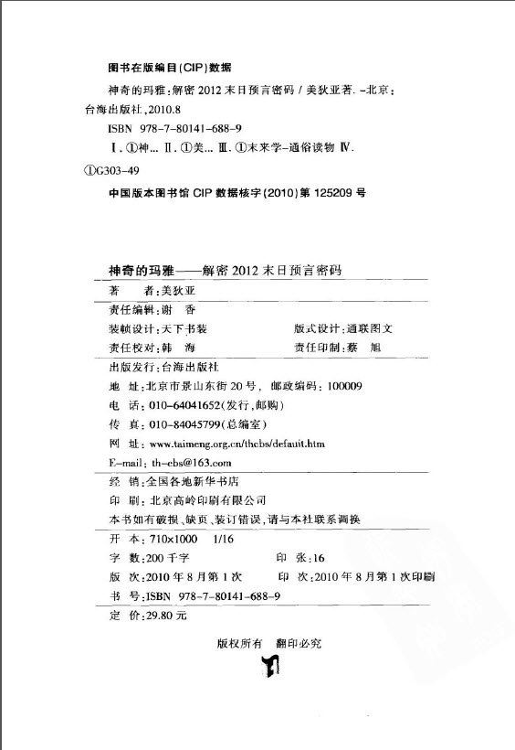 一次关于2012最完整、最离奇、最深入的预言揭秘。一本最神秘、最晦涩、最独特的玛雅文化解读。