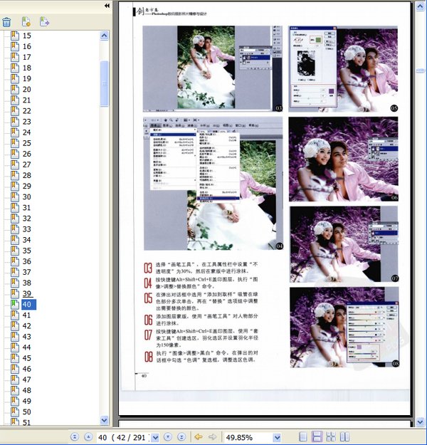 : 1. 基础篇 1.1 影楼数码设计 10 1.1.1 数码设计师的由来 10 1.1.2 数码设计与摄影的关系 10 1.1.3 解读照片 11 1.1.4 设计师与摄影师的配合 12 1.2 了解数码照片 12 1.2.1 数码相机的工作原理 12 1.2.2 数码照片的格式 14 1.2.3 数码照片常识 14 1.3 Photoshop色彩理论 15 1.4 色彩的心理感觉 16 2. 调色篇 2.1 打造清晰开阔的海景婚片 20 2.2 浪漫冬雪 25 2.3 秋天的童话 30 2.4 红外线效果 34 2.5 唯美紫色调 39 2.6 打造别样蓝色调 44 2.7 梦幻红色调 48 2.8 唯美古典青色调 55 2.9 调出古典灰白色调 61 2.10 温馨暖色调 64 2.11 柔美暖色调 66 2.12 艺术暖色调 70 2.13 复古怀旧色调 74 2.14 淡淡的思绪 79 3. 人像修图篇 3.1 蒙尘与划痕磨皮法 87 3.2 高斯模糊磨皮法 91 3.3 表面模糊磨皮法 95 3.4 通道磨皮法 99 3.5 Portraiture滤镜磨皮 104 3.6 Neat Image滤镜磨皮法 107 3.7 打造白皙通透的肌肤 111 3.8 打造古铜色质感肌肤 115 4. 人像妆容篇 4.1 打造时尚眼影 121 4.2 打造时尚发色 124 4.3 添加睫毛 129 4.4 为黑白照片上色 132 4.5 增强人物妆容 138 4.6 打造梦幻彩妆美女 145 5. 艺术特效篇 5.1 天籁之音 156 5.2 温馨港湾 160 5.3 舞动水元素 165 5.4 暗夜精灵 170 5.5 D’调的奢华 178 5.6 唯美油画 189 5.7 夜色浪漫 196 5.8 印象 202 5.9 手绘效果 208 5.10 梦幻天使 220 6. 摄影后期设计篇 6.1 影楼后期的版面设计 228 6.2 守望梦境 238 6.3 蝶衣 247 6.4 蝴蝶兰之恋 253 6.5 恰光影流年 260 6.6 艺术写真 267 6.7 个性怀旧风格写真 271 7. 技能提升篇 7.1 平面设计的理论及应用 281 7.2 样片的设计 284 7.3 如何提高后期处理速度 286 7.4 数码设计师的自我修养 287