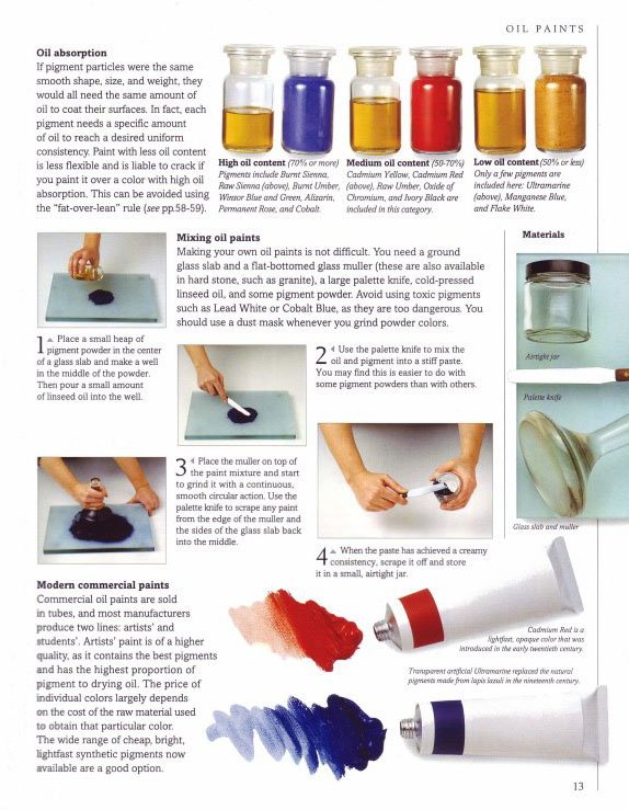 : 6 characteristics of oil paint 8 a brief history 12 oil paints 14 equipment 16 choosing colors 18 color mixing 20 low-key & high-key color 22 gallery of color 24 brushes 26 blending & dry brush 28 glazing & impasto 30 brushwork effects 32 gallery of brushwork 34 choosing a support 36 preparing supports & grounds 38 ways of working 40 creating a composition 42 composition 44 gallery of composition 46 painting on a white ground 48 painting on a white ground 50 gallery of white & toned grounds 52 alla prima painting 54 working with a painting knife 56 gallery of alla prima paintings 58 painting in layers 60 painting in stages 62 gallery of painting in layers 64 experimental techniques 66 varnishing & framing 68 glossary 72 index