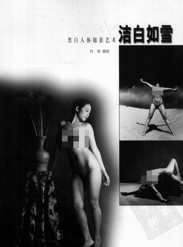 当付欣把一堆用伊尔福相纸制作的黑白人体摄影作品放到我面前时,我的第~个感觉就是他干了一件吃力不讨好的事。为什么这样说,您只要到街边的报亭上一看就明白了,现在给平媒拍彩色的美女封面那是什么行情,再说这活也好干啊。反转片一装,选定的美女模特、明星们招牌式地妩媚一笑,咔嚓,咔嚓,搞惦了,接着就是在编辑的灯箱上选片了。谁还钻进“小黑屋”(黑白暗房)里穷折腾啊。在现如今这个”读图时代”里。按照工业化的方式生产出一批批市场需要的”美人图快餐“,既轻松又挣钱。对于像付欣这样的人像摄影师来说不会是太难的搴,何苦干这个往里尽扔钱的活呢。