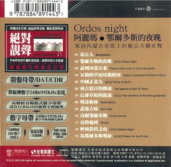 来自内蒙古草原上的极品天籁女声——阿丽玛《鄂尔多斯的夜晚》2012年度蒙汉双语大碟。