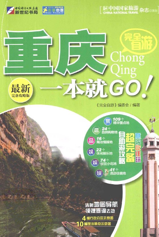 重庆市,简称“渝”,地处中国西南地区,因多山多雾素有“山城、雾都”之别称,因夏季天气炎热,故又有“火炉”的称号。它是中国的四大直辖市之一和五大中心城市之一,也是国家历史文化名城,长江上游地区经济中心、西南地区综合交通枢纽。美国《外交政策》杂志中称重庆为东方“芝加哥”。具有三千年悠久历史的重庆旅游资源丰富,既有集山、水、林、泉、瀑、峡、洞等于一体的壮丽自然景色,又有熔巴渝文化、民族文化、移民文化、三峡文化、陪都文化、都市文化于一炉的浓郁文化景观。全   市共有自然、人文景点300余处,其中包括世界文化遗产1个、世界自然遗产1个、全国重点文物保护单位13个以及国家重点风景名胜区6个。这里风光绝美:长江三峡是中国十大风景名胜之一,中国四十佳旅游景观之首。这里繁华热闹:素有“西部第一街”美誉的解放碑商贸中心区(CBD)有望跻身中国第三大商圈(仅次于北京王府井和上海南   京路)。这里美食荟萃:重庆菜属于川菜系分支,菜品麻辣鲜香,火锅更是闻名遐迩。   针对这座美丽的城市,我们精心打造了这本《完全自游重庆一本就GO》,主要为读者展现重庆及周边的各色美景、必吃美食、购物宝地以及住宿地点,并将它们按照所处的不同行政区域融会到本书的三大部分之中。同时,我们还将为您奉上许多富含实用信息的特色栏目,如“景点分布图”、“旅行建议”、“其余住宿推荐”等,希望能满足您全   方位的需要,带给您一次愉悦的旅程。 白光盘用户请关注QQ群 279398828