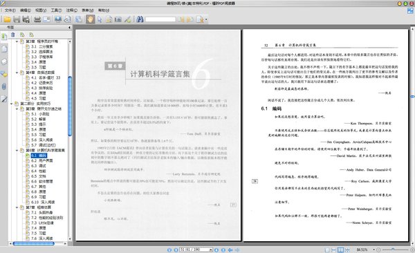 : 第一部分 编 程 技 术 第1 章 性能监视工具 1.1 计算素数 1.2 使用性能监视工具 1.3 专用的性能监视工具 1.4 开发性能监视工具 1.5 原理 1.6 习题 1.7 深入阅读 第2 章 关联数组 2.1 Awk 中的关联数组 2.2 有穷状态机模拟器 2.3 拓扑排序 2.4 原理 2.5 习题 2.6 深入阅读 第3 章 程序员的忏悔 3.1 二分搜索 3.2 选择算法 3.3 子程序库 3.4 原理 3.5 习题 第4 章 自描述数据 4.1 名字—值对 4.2 记录来历 4.3 排序实验 4.4 原理 4.5 习题 第二部分 实 用 技 巧 第5 章 劈开戈尔迪之结 5.1 小测验 5.2 解答 5.3 提示 5.4 原理 5.5 习题 5.6 深入阅读 5.7 调试(边栏) 第6 章 计算机科学箴言集 6.1 编码 6.2 用户界面 ~~~