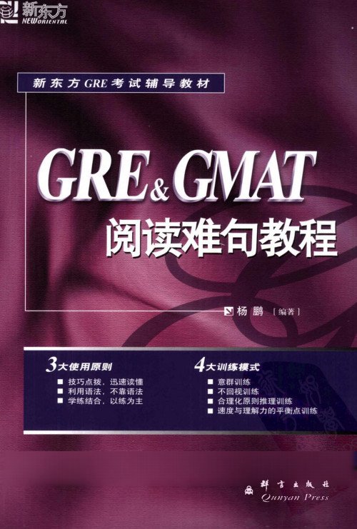 : 任何一本以考试学习为目的的教学书籍,如果不能贴近实战,必为废品。《GRE & GMAT阅读难句教程》有两个目的:第一,训练读者在现场迅速读懂GRE和GMAT考试中出现的难句子的能力。第二,《GRE & GMAT阅读难句教程》也可以用作复习GRE和GMAT考试阅读部分的参考书,同学们可以在此查找到在文章中最难以理解的句子的详细解释(包括中文翻译和语法分析)。