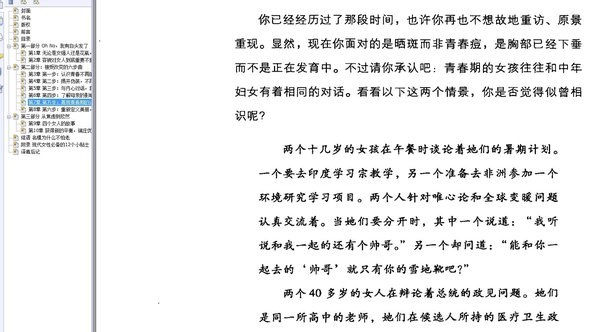: 第一部分:Oh No,我有白头发了 第1章:无论是女强人还是花瓶,变老的恐惧都挥之不去 在希拉里竞选美国总统时,脱口秀主持人含蓄地问他的听众,“美国人民愿意每天见证着一个女人慢慢地老去吗?” 第2章:容貌对女人到底重要不重要 芭芭拉在42岁时做了第二次整容手术。当她还处于手术恢复期,她的丈夫就提出了离婚。 第二部分:接受改变的六步曲 第3章:第一步:认识青春不再的深层威胁 菲丽丝30岁,一次她去找妇科医生商量做结扎。结果她的医生说:“也许你应该做胸部下垂纠正手术,反正你也不会再哺乳了。”她真不知道该怎么回答。 第4章:第二步:揭开伪装,不再逃避焦虑 苏菲发现,有好几周都没有同事来和她打情骂俏了,她意识到自己真的老了。她采用了她的一贯方法——开始疯狂购物。 第5章:第三步:与内心对话,探寻焦虑的本源 聆听自己的内心对白让汉娜认识到,她对自己的评价恰恰和她从出了车祸的父亲身上感觉到的一样——愤怒、怨恨和听天由命。 第6章:第四步:了解母亲的影响,不必重蹈覆辙 凯伦说:“我妈妈从未向我演示过怎样化妆。我也不记得她曾经摆弄过我的头发或带我逛过街……我觉得她不喜欢当女人。” 第7章:第五步:善用青春期的记忆,解决中年期的问题 贾丝汀身材娇小,是一名网球教练。最近,贾丝汀瘦了15磅。很多同龄人都很羡慕她,但贾丝汀很清楚,自己是在自我摧残,这让她想起了青春期时的经历。 第8章:第六步:重新定义美丽,化失落为满足. 莱思莉说“我刚开始觉得很难过,就好像要告别那个过去总觉得可以掌控的自己。但我现在明白,我可以在生命中的其他东西中找到安全感。” 第三部分:从焦虑到欣然 第9章:四个女人的故事 凯瑟琳年轻时,几乎从来没有关注过自己的外表,她的自信来源于她的事业。但青春不再和臃肿的身材一样让她很心烦。 第10章:获得新的平衡,端庄优雅地面对 我们要像希拉里在退出竞选演说中那样,可以深信不疑地说:“一味地追溯过往只会浪费我们的每分每秒,让我们止步不前。” 附录:现代女性必备的12个小贴士