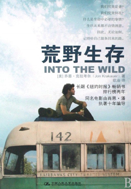 《荒野生存》同名电影由肖恩·潘执著10年倾情编导。纽约时报评论“令人震慑,让人感动,一个探索人类心灵深处某种追寻的动人故事。”