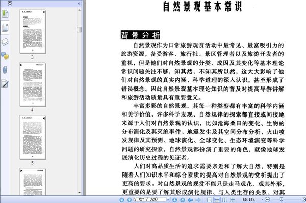 我国地域广阔,几乎拥有世界上所有的自然景观类型:从世界上最高的高原景观到世界上著名的低海拔盆地景观、从世界上最大峡谷景观到世界第三大河长江景观、从热带雨林景观到荒漠景观、从世界上最高的湖泊到特有的黄海景观、从“冰期”遗留下来的珍稀动植物景观到古树名木景观、从生物大爆发景观到恐龙灭绝景观、从大陆冰川景观到黄土景观、从泰山日出景观到西湖秋月景观、从黄山云海景观到峨眉佛灯景观、从世界自然遗产景观到世界地质公园景观,无不展示出我国自然景观的丰富和独特地位。就自然景观类型中的宇宙景观、地质景观、地貌景观、大气景观、水体景观、生物景观看,各种主要类型的典型景观都能在我国找到代表。这对我们更好地认识和掌握自然景观,具有非常大的实践意义。我们不仅有义务保护、珍惜我们的自然景观,更有义务介绍好、推广好自然景观,让我们的自然景观走向世界。