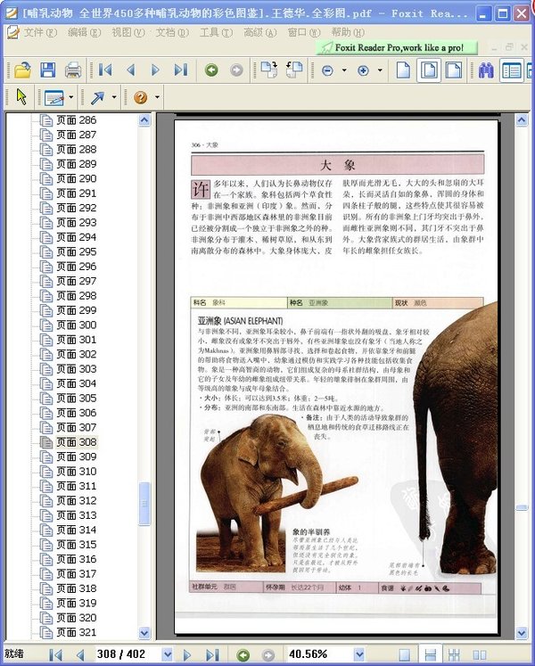 : 前言 如何使用此书 什么是哺乳动物 进化 多样性 解剖 繁殖 社会群体 感觉烽通讯 运动 取食 沙漠哺乳动物 草原哺乳动物 森林哺乳动物 极地和高山哺乳动物 水生哺乳动物 观察哺乳动物 濒危哺乳动物 保护 哺乳动物与人类 分类 名录 卵生哺乳动物 有袋类 食虫类 蝙蝠 象鼩 鼯猴 树鼩 原猴类 猴 猿 树懒、食蚁兽和犰狳 穿山甲 穴免、野兔和鼠兔 啮齿类 …… 名词解释 索引