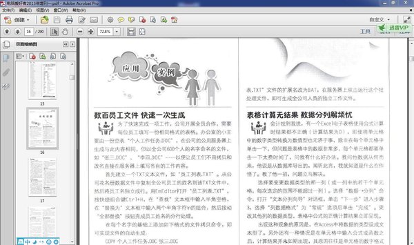 : 公司校园 应用实例 数百员工文件 快速一次生成 表格计算无结果 数据分列解烦忧 轻松建立多对多账户映射 双行工资条 新手也能搞定 给报表添加水印 快速生成设备鉴定表 几十元打造单位考勤机 不用切换 会议录音整理同步 会议录音 缺席也能及时听 涂鸦跳跃 让提醒充满趣味 严格把关 杜绝乌龙邮件 PDF书签制作不求人 小数点对不齐 占位符帮你补 财务报表多文件同时打开 多报表文件快速预览 抛弃手工 输入法自动切换 通配符在计算中的应用 一个5变出各种钢筋断面 一个1产生万千数字序列 不付费实现内部断网通信 轻松打印条形码 送客户一份最省心的幻灯片 精确计算个人所得税 轻松转换日期格式 下载资料 巧“跳”校园网 课件插入视频 别忘关键步骤 问卷不用纸 在线更简便 课文录音与文字同步 通过高级筛选提取信息 虚拟打印机 打印准考证 一键制作多行报名条 “捣蛋”学生请别躲开老师视线 活用受限制区域做试卷 下拉列表选择输入年级学科 变化的表头标题不必挨个改 绕圆动画需把圆心定住 防丢失 改变文档默认路径 电子教鞭在手 屏幕指点不愁 公式输入不用烦 数学输入面板帮你忙 在线打印成绩单 有无水印找插件 课堂随机点名提问 Word技巧 打开Word 工作自动接着干 段落的快速选取 句子的快速选取 矩形选取 改变选择方向 全文选取 不光只有Ctrl+A 扩展选取 选择更加灵活 如何纵向选择文本块 Word也能自动填充表格序列 中文粘贴 随身空格自动删 快速实现中英文互译 英文单词 排版断行自解决 巧用文档内超级链接整合资源 获知Word文档版权信息 快速获得Word文档图片 输入汉字却打开对话框 文章落款快速插入 让文档实现自动预览 在迷茫中快速定位 让打开文档少走弯路 备份文档不要等到最后 自动编号不见得就给你方便 用智能标记代替选择性粘贴 用剪贴板的图表等进行替换 文档字数统计更方便 一次性关闭所有文件更简单 快速输入专业术语 各种线型的输入 快速输入常用网络表情 快速输入大写中文数字 输入倒过来的标点 轻松插入欧元符号 快速进行英文大小写转换 用Word域输入分数或根式 给多音汉字正确加拼音 超级链接去除分别对待 快速调整文档字体大小 将Word表格转换为Excel表格 文档损坏 文字可如此挽救 文档错误 不借外力自我修复 改变方式 修复打开 限制运行 屏蔽掉宏 借助工具 转换修复 文档内容快速定位诀窍 巧缩版面 不用斟酌删减 删除Web文章中的空行 另类的文档快速查找 文档中页码设为从1开始 还你一个干净的页眉 快速精准选取跨页文字 在Word表格中计算 用“域”计算 用“工具计算”按钮计算 给Word捆绑一个计算器 网页表格清爽进Word 巧用Shift+F2组合键复制文字 快速找到上次修改的位置 用快捷键来指定快捷键 利用标记目录项插入目录 对文档进行快速格式化 分屏对照显示编辑长文档 插入上下标可以更简单 文字成批换成图片 网文空格一次删除 强行断行一次解决 一次删除脚注或尾注 Excel技巧 双击填充柄填充更快速 巧用名称框实现区域选择 快速到达Excel特定单元格 表格多页打印 页页有标题 节约用纸 表格分栏打印 一步删除单元格中文本的前导符 使用“选择列表”快速输入 电子表格无法移动单元格光标 使用快捷键完全删除单元格 别把分数当日期 不动鼠标的连续输入技巧 VBA宏模块不能保存之谜 修改表格错误 精准定位单元格 选定整个单元格的快捷键 一次打开多个工作簿 表格冻结不仅是首行首列 表格冻结不需点拆分 快速清除Excel单元格内容 在两个工作簿中互相倒腾工作表 快速修改单元格次序 表内大段文字巧输入 免小数点快速输入小数 在区域内换行显示文字 在Excel中建立垂直标题 表格数据实现下拉列表选择录入 使复制内容“所见即所得” 谜底答案使用头朝下的文字 批量单元格自动换行 表格临时性输入随时换行 表格跨区域实现文字换行 表中自由套用文本框 输入常用特定内容序列 有规律的序列文本快速输入 级差序列的输入 GB国家标准名称快速输入 多次输入特殊符号 在Excel中插入特殊符号 文本重复用的两条捷径 在多个工作表间快速切换 表格中如何出现删除线 快速交换两列数据的位置 用通配符进行查询替换 选定数据的快捷键 快速输入整百整千数字 在单元格中输入当前时间 快速输入相同的数据 如何让页眉和页脚显示“&” 重复上一次的输入内容 输入数字自动转成中文大写 长数字输入有更简单办法 快速重设Excel文件关联 转换单元格类型的捷径 不让Excel留下打开痕迹 在固定区域内输入内容 多张表中同时输入相同数据 大量批注如何撤销 把批注的内容转入表格内 利用快捷键实现插入式粘贴 设定表格数据类型及允许值 PowerPoint 技巧 快速查看幻灯片动画效果 PPT编辑 空格跟着英文走 幻灯片自动更新日期与时间 PPT存盘“保险系数”自己调整 评估一下你的幻灯片字体大小 照顾色盲 幻灯片慎用绿色 以窗口播放或小屏幕播放 幻灯播放慢 优化可提速 向多张PPT应用镜头切换效果 播放幻灯片时隐藏鼠标 放映幻灯片时使用画笔 快速让PPT从头再来 幻灯片也能保存为高清图 改变部分PPT画面 让几个动作齐头并进 自定义对象的动作路径 按照字母或者字显示文本动画 让动画播完后自动返回原状 动画显示之后使文本变暗 让标题出现时跳几跳 让幻灯片播放