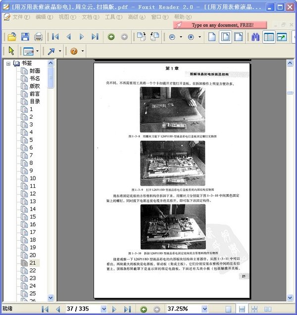 : 第1章图解液晶彩电拆装及结构 1.1图解海信TLM3207A型液晶彩电板块结构 1.2图解夏新LC32M2型液晶彩电板块结构 1.3图解TCL L26P11BD型LED多功能液晶彩电拆装实例 第2章万用表检修液晶彩电方法 2.1指针式万用表应用基础 2.1.1MF115型指针式万用表结构性能 2.1.2MF115型指针式万用表测试应用 2.2数字式万用表应用基础 2.2.1FT217C型数字式万用表结构性能 2.2.2FT217C型数字式万用表测试应用 2.3电源板和高压板常见故障现象与检测 2.4主板和屏驱动板常见故障现象与检测 2.5液晶屏及其他电路常见故障现象与检测 2.6常见故障分析和万用表关键点检测 第3章加电无任何反应故障检修实例 3.1海信、海尔液晶彩电检修实例 例1海信TLM37V68型液晶彩电,加电后无任何反应 例2海信TLM37V68型液晶彩电,有时无任何反应 例3海尔L32R1型液晶彩电,加电后无任何反应 例4海尔L42A9-AD型液晶彩电,加电后无任何反应 例5海信TLM3277型液晶彩电,加电后无任何反应 3.2创维液晶彩电检修实例 例6创维某型LED液晶彩电,加电后无任何反应 例7创维某型LED液晶彩电,加电后无任何反应 例8创维某型LED液晶彩电,加电后有时无反应 例9创维某型32寸液晶彩电,加电后无任何反应故障之一 例10创维某型32寸液晶彩电,加电后无任何反应故障之二 例11创维24S19IW型液晶彩电,加电后无任何反应故障之一 例12创维24S19IW型液晶彩电,加电后无任何反应故障之二 例13创维32E60HR型LED液晶彩电,加电后无任何反应 例14创维22L08IW型液晶彩电(板号5800-P20TLN-05),加电后无任何反应 例15创维26寸某型LED液晶彩电(板号5800-P26TWU-0110),加电后开机无任何反应 例16创维LED液晶彩电(8M81机芯,主板号5800-A8M810-0020),加电后无反应 例17创维42L05HF型液晶彩电,加电后无任何反应 例18创维42P98MV型液晶彩电,加电后无任何反应 例19创维55LED09型LED液晶彩电,加电后无任何反应 3.3康佳液晶彩电检修实例 例20康佳37寸某型液晶彩电,加电后无任何反应故障之一 例21康佳37寸某型液晶彩电,加电后无任何反应故障之二 例22康佳42寸LC42CS11型液晶彩电,加电后有时无反应 例23康佳某型液晶彩电,加电后无任何反应故障之一 例24康佳某型液晶彩电,加电后无任何反应故障之二 例25康佳某型液晶彩电,加电后有时无反应 3.4长虹液晶彩电检修实例 例26长虹LT4288型液晶彩电,加电后无任何反应 例27长虹PT4206液晶彩电,加电后有时不能开机(无反应) 例28长虹LT4288型液晶彩电,加电后有时无反应 例29长虹LT19629型液晶彩电,加电后无任何反应故障之一 例30长虹LT19629型液晶彩电,加电后无任何反应故障之二 例31长虹LT22629型液晶彩电,加电后无任何反应故障 3.5夏新、厦华液晶彩电检修实例 例32夏新LC32M2液晶彩电,加电后无任何反应 例33夏新37HWT2A型液晶彩电,加电后无反应 例34厦华LC-37T25型液晶彩电,加电后无任何反应 例35厦华LC-20Y15液晶彩电,加电后无任何反应 3.6TCL液晶彩电检修实例 例36TCL L26P11BD液晶彩电,加电后无任何反应 例37TCL L26P11BD液晶彩电,加电后无任何反应,但能够遥控开机 例38TCL L26P11BD液晶彩电,加电后有时无任何反应 例39TCL L26P11BD液晶彩电,加电后有时无任何反应 例40TCL L26P11BD液晶彩电,加电后无任何反应 例41TCL L26P11BD液晶彩电,加电后有时无任何反应 例42TCL某型液晶彩电(麦格米特MLT666T电源),加电后无反应故障之一 例43TCL某型液晶彩电(麦格米特MLT666T电源),加电后无反应故障之二 例44TCL 42B66液晶彩电,加电后有时不能开机(无反应) 例45TCL LCD32B66型液晶彩电,加电后开机无任何反应 例46TCL LCD32B66型液晶彩电,加电后有时不能开机 3.7东芝、夏普、松下液晶彩电检修实例 例47东芝LED32BF1型液晶彩电,加电后无任何反应故障之一 例48东芝LED32BF1型液晶彩电,加电后无任何反应故障之二 例49东芝32A3000C液晶彩电加电后有时正常,有时无任何反应 例50夏普LCD-42B7液晶彩电,加电后有时无任何反应,有时又正常 例51夏普LCD-37BX5型液晶彩电,加电后无任何反应 例52松下32LE7D型液晶彩电,加电后无任何反应 3.8LG、三星液晶彩电检修实例 例53LG-32LB9R-TB液晶彩电,加电后有时无任何反应 例54LG-32LB9R-TB液晶彩电,加电后无任何反应 例55三星LTA320WT-LF1型液晶彩电,加电后无任何反应 例56三星37LC7R-TA型液晶彩电,加电后无任何反应故障之一 例57三星37LC7R-TA型液晶彩电,加电后无任何反应故障之二 例58三星LA40R81BA型液晶彩电,加电后无任何反应 3.9AOC、飞利浦液晶彩电检修实例 例59AOC某型32寸液晶彩电(715T2907),加电后无任何反应 例60AOC某型32寸液晶彩电(715T2804),加电后无任何反应 例61AOC某型32寸液晶彩电(715T2804),加电后有时不能开机 例62飞利浦32寸某型液晶彩电,加电后有时无任何反应 例63飞利浦32寸某型液晶彩电,加电后无任何反应 例64飞利浦32寸液晶彩电(电源型号PLCD190P5),加电后无任何反应 例65飞利浦32寸液晶彩电(电源型号PLCD190P5),加电后有时无任何反应 3.10其他机型液晶彩电检修实例 例66采用全汉FSP115-4HZ01电源的某32寸LED液晶彩电,加电后无任何反应 例67采用麦格米特MLT198TX电源的液晶彩电,加电后无反应故障之一 例68采用麦格米特MLT198TX电源的液晶彩电,加电后无反应故障之二 例69采用麦格米特MLT199TL电源的52寸液晶彩电,加电后无任何反应 例70采用麦格米特MP118电源的LED液晶彩电,加电后无任何反应 例71全汉32寸液晶彩电(采用MLT666T通用电源板),加电后无任何反应 例72奇美N-3205型液晶彩电,加电后无任何反应 例73