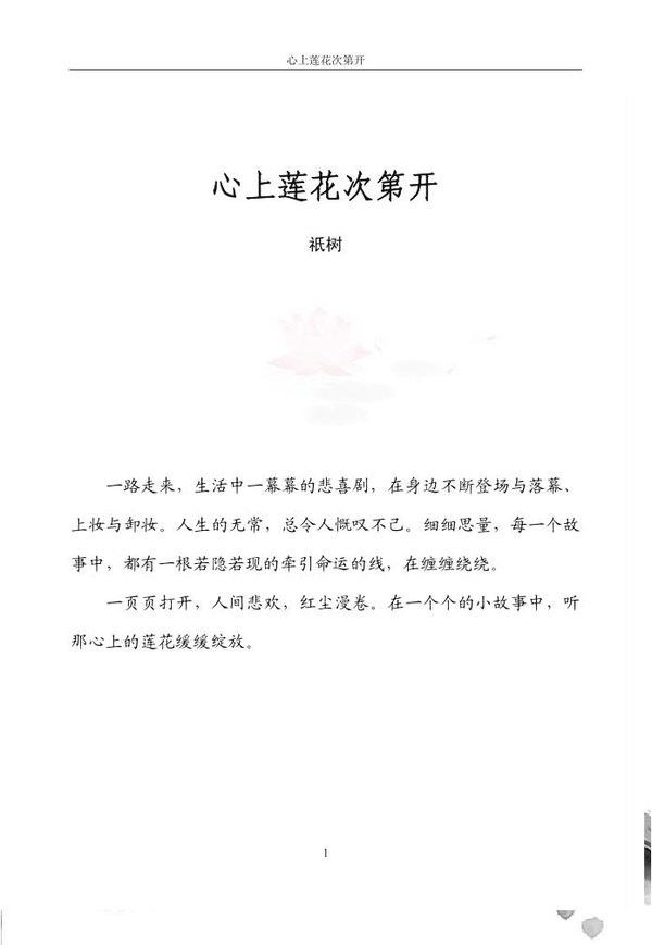 一页页打开,人间悲欢,红尘漫卷。在一个个的小故事中,听那心上的莲花缓缓绽放。