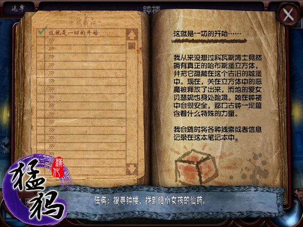 ※※※※※※※ 游戏介绍 ※※※※※※※ 在雪白的意大利阿尔卑斯山坐落着豪华的剧院,剧院的老板获得了可怕的哈布斯堡王朝的立方体,据说其中隐藏着强大的古巴比伦恶魔,如果打破立方体会造成地狱般的毁灭。立方体的恶魔占据了博士的灵魂,他的小女儿贝瑟妮也被恶魔所控制了。古代剧院成为了黑暗的力量的战场,斯嘉丽发现自己是唯一能打败强大恶魔的人,只有她能获得这场荒诞剧的入场券。 游戏的画面艺术风格独特,人物被描绘的扭曲而恐怖,体现了恐怖游戏独有的内涵。游戏的场景充满了古典和魔法风格,3D的效果和光线的运用让场景笼罩着一层神秘的面纱。 游戏的玩法和同类解谜游戏类似,经历的开始的剧情介绍之后,主角开始在剧院的冒险,一开始多数地点都是被锁住的,你要寻找道具解开线索,一些道具被隐藏在场景中,而一些则需要你通过找图解谜游戏在混乱的物品中寻找到。 游戏的容量虽然不大,但情节很吸引人,由Gogii Games制作的游戏品质还是能够保证的。在游戏中你将经历一场全新的冒险,深入真实和梦幻之间的魔法世界。 在游戏中你要战胜邪恶的灵魂,并探索一个美丽而古老的剧院,收集文物,同时拯救一个年轻女孩,解开独特的益智小游戏,寻找隐藏对象的谜题,使用强大的魔法对抗恶魔! 本次汉化特别说明: 这游戏真心难汉化啊!!!是真的难!!!!中途无数次搁浅,汉化了好几个月,终于锲而不舍的追捕鱼总完成了这个游戏,大家记得跟我念一句:鱼总威武,文韬武略千秋万代一统江湖永生不灭!!!!!!!! 于是经过这几个月的磨耗,我对这游戏果断无爱了= =###但是!!!但是!!!!在玩的过程中,我又爱上它了!!!这真是个好游戏啊亲们!!当然,也许我比较恶趣好那么一小点点点点…… 猛犸家园汉化发布 【汉化名单】 翻译:一文字流琉音 美工:AmyliebiMi、花花小肚兜 技术:weiyun 校对测试:飞翔的鱼 统筹:飞翔的鱼(壮丁快到我的碗里来!大量滴!速度滴!乖乖滴~!) 网址:81256.com 汉化考核qq群:69357062 汉化交流qq群:1367569 欢迎感兴趣的童鞋加入猛犸汉化大家庭 本游戏已在win7 64位电脑上测试过,顺利通关~ 注意:请解压在全英文路径上! http://kuai.xunlei.com/d/glI6BgJLCACZJ8xR5cf