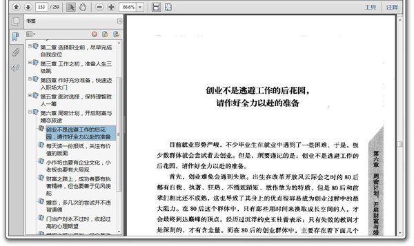 : 第一章 毕业后,确定要走到哪一步 找一个灵魂偶像作为奋斗的标杆 用一个苛刻的数字规定成功的年龄 阶段性目标可以稀释难度,让行走的脚步更为轻快 “先就业后择业”的路线不可取 大公司还是小公司?起点决定高度 外企国企民企,需求不同,路线相左 一、二、三线城市的美丽与哀愁,踏上适合自己的温馨土壤 第二章 选择职业前,尽早完成自我定位 不为专业“遮望眼”,兴趣爱好是关键 性格决定工作方向,除非具备改天换地的勇气 跟风有风险,深造需谨慎 学术型还是镀金型?评估深造的实际收益 财富之路在何方,寻找力所能及的项目 缔造创业神话,初期计划是关键 保持最强大的自信,预设最悲惨的结局 “考公”,不仅仅是个人奋斗 从政,找一个晋升的常规性道路 第三章 工作之初,准备人生三级跳 升职,早不得晚不得,时机需要争取 加薪,一个心理预期和一个恰当时机 工作后的考证进修,一定要为己所用、为己所需 朝阳产业并不总朝阳,谨慎转行 翅膀变硬后的跳槽,是提升还是转学 冲破惯性思维,谈一场现实的爱情并不可耻 慎重选择另一半,他(她)将参与你的大半人生 每个人的结婚黄金年龄都不同,不要让人牵着走 年纪渐长后,成为一个有魅力的人 第四章 作好充分准备,快速迈入职场大门 如何搜集与解读招聘信息,技巧化让一切事半功倍 面试童话,不信内容信思想 度过入职的尴尬期,新人没有特权 办公室哲学:应对老员工的冷暴力 办公室政治——派系斗争最麻烦 快快乐乐上班,为自己打工 好相处比有能力更受重视 第五章 面对选择,保持理智胜人一筹 君子之交淡如水,职场友谊留三分,不要逢人就掏心窝子 老板眼里没有苦劳,只看结果 把考验当成机遇,关键时刻绽放异彩 跳槽要谨慎,不要轻易辞职 在职进修要找好平衡点,否则得不偿失 深造的八项注意,信息资料一手抓 调整考研和留学的心态,切忌浮躁 第六章 周密计划,开启财富与婚恋旅途 创业不是逃避工作的后花园,请作好全力以赴的准备 每天读一份报纸,关注有价值的版面 小作坊也要有企业文化,小老板也要有大局观 财富之路上,成功者要有执著精神,但也要善于见风使舵 婚恋,多几次的尝试并不违背道德 门当户对永不过时,收起过高的心理期望 婚姻也可以规划,学会互助互利,实现双赢 第七章 自我完善是一个长期过程 过分羡慕别人是一种自我否定,关注自己最重要 掌控不了时间的人,什么都无可掌控 懒惰的人没饭吃,抽掉懒筋才能直起身板 压力是炫耀的资本,是成人的标志 鸡蛋放在一个篮子里,专心做好眼前的一件事 得意不要忘形,认清自己“是什么” 理想化是青春的坟墓,请参与眼前的俗世 第八章 学会自我管理才能成熟 平凡但绝不平淡,野心让青春永驻 战胜害羞,勇敢地“曝光”自己 疏于调节生活与事业的关系,注定两者都失去 永远保持在学生状态,千万不要失去学习能力 从收入最低的时候开始理财,你理财财“理”你 等待是上帝给的悠长假期,请愉快地享受 “宅一生”是个悲剧,请战胜社交恐惧症 第九章 修炼处世规则 交际是长远的投资,不要幻想即种即收 人脉架设,有“贵人”也要有“平民” 见贤思齐,朋友圈子决定个人高度 过于肉麻的恭维有反效果,智慧地夸奖为自己加分 赢得人心,不可忽视有关细节的大乾坤 宽容别人就是修炼自己 话说太满,无可进退,世事无绝对,给自己留点余地 微笑是没有成本的,但一定要真诚 听的时候仔细听,说的时候才有机会说 偶尔装傻并不掉价,扮猪才能吃老虎