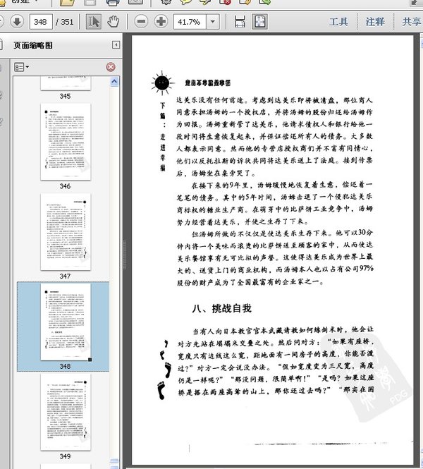 : 上篇:走出不幸 第一章 别让不幸堵住胸口 第二章 在困境中摸索 第三章 走出绝望 第四章 失业并不可怕 第五章 远离孤独忧虑的人生 第六章 远离病魔打造健康 下篇:走进幸福 第七章 审视的心态 第八章 拓宽视野 第九章 在自省中寻找智慧 第十章 不断在失败中前进 第十一章 重新焕发青春活力