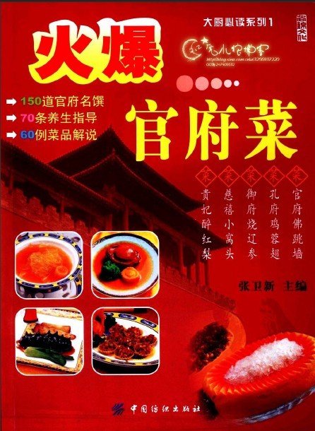 大厨必读系列。《火爆官府菜》有火爆官府菜150道官府名馔,70条养生指导,60例菜品解说。《火爆官府菜》由张卫新编写。张卫新,大专文化,现任北京八珍御府酒店管理有限公司总经理,北京唐人街酒店管理集团餐饮总监。中国烹饪大师,中国最年轻餐饮文化大师,中国最受瞩目青年厨师,中国饭店业高级职业经理人,国家高级烹饪技师、高级烹饪教师、高级营养教师,中国药膳烹饪专家委员,中国摄影家协会会员,国家劳动保障部中烹专业考评员、国家级评委。