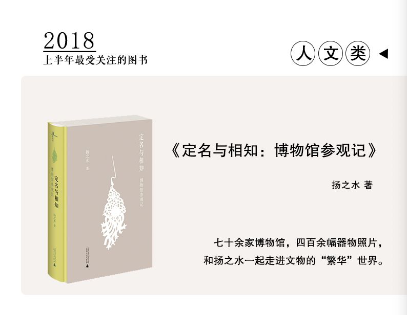 因此,在这年中之际,我们希望对媒体关注、推荐的广西师大社图书进行精选聚合,依据单本图书于2018年1月-6月在各类媒体上的曝光数量,按文学、新知、历史、人文、艺术、少儿等分类,筛选出上半年广西师大社15本最受媒体关注的图书做成书单,以回顾和审视过去半年的做书成果。本期推送我们也将这份书单分享给各位读者朋友,供大家按图索骥、参考收藏。