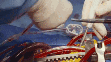 病人连接心脏的主动脉被手术刀剪开后,强大的血压使鲜血迅速喷张。摄像机架在手术台一米开外,导演秦博没有经验,不知道躲避,几滴血溅到了他的脸上。