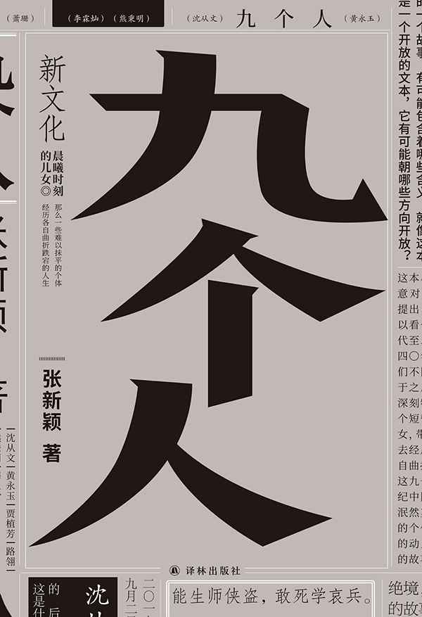 这九个人是:沈从文、黄永玉、贾植芳、路翎、穆旦、萧珊、巫宁坤、李霖灿、熊秉明。他们的故事,交织进二十世纪中国的大故事里。虽然在二十世纪中国,个人的力量过于弱小,“不过弱小的力量也是力量”。张新颖的传记写作非常讲究内在的情感张力,他将生命参与到所要讲述的九个人的心灵历程中,与他们的内部世界进行着沟通。