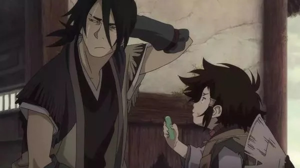 (图为仔太郎用玉石请=换取无名的帮助。PS:这块玉为结局埋下了伏笔)