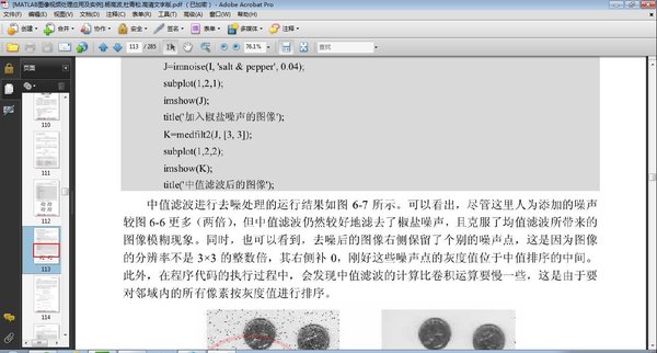 : 第1章 MATLAB 7概述12 1.1 MATLAB 7简介12 1.1.1 MATLAB 7的新特点12 1.1.2 MATLAB 7的用户界面13 1.1.3 MATLAB 7的帮助系统15 1.1.4 使用联机演示功能18 1.2 MATLAB数据类型19 1.3 MATLAB操作基础20 1.3.1 命令和语句的输入20 1.3.2 矩阵的输入21 1.3.3 语句与变量21 1.3.4 矩阵的基本操作22 1.3.5 数学运算与函数24 1.4 MATLAB脚本文件和函数文件24 1.5 MATLAB程序设计基础25 1.5.1 M文件的创建与编辑25 1.5.2 数据的输入/输出26 1.5.3 程序流程控制26 1.5.4 MATLAB程序调试28 1.5.5 MATLAB程序剖析29 1.6 提高MATLAB程序运行效率30 1.6.1 数组预分配30 1.6.2 循环向量化32 1.6.3 简单函数内联化32 第2章 MATLAB图像处理基础34 2.1 数字图像处理基础34 2.1.1 物理图像的数字化34 2.1.2 数字图像的表示35 2.1.3 数字图像处理的主要研究内容35 2.2 MATLAB工具箱简介36 2.2.1 图像处理工具箱36 2.2.2 图像捕获工具箱40 2.3 MATLAB中图像的数据类型41 2.4 MATLAB中的图像类型42 2.5 图像文件的读/写和显示44 2.6 颜色空间46 2.6.1 几种颜色模型46 2.6.2 颜色空间的转换47 2.7 数字图像的块处理49 2.7.1 显式块操作49 2.7.2 滑块邻域操作51 2.8 图像质量的客观评价53 2.8.1 峰值信噪比53 2.8.2 测试图像和视频测试序列57 第3章 图像的运算58 3.1 图像的代数运算58 3.1.1 绝对值差函数imabsdiff( )58 3.1.2 图像的迭加函数imadd( )59 3.1.3 图像求补函数imcomplement( )60 3.1.4 图像的除法运算imdivide( )60 3.1.5 线性组合函数imlincomb( )61 3.2 几何操作62 3.2.1 图像的缩放62 3.2.2 图像的旋转64 3.2.3 图像的剪切65 3.2.4 图像的二维空间变换66 第4章 MATLAB视频处理基础68 4.1 MATLAB图像处理工具箱中对视频处理的支持68 4.1.1 常见的数字视频文件格式及其特点68 4.1.2 MATLAB7.1图像处理工具箱中的视频操作68 4.2 其他的视频文件读/写操作函数71 4.2.1 MPEG压缩的AVI文件读/写71 4.2.2 VideoIO工具箱72 4.2.3 交互式MATLAB Movie播放器73 4.3 从静止图像向AVI视频文件的转换74 4.3.1 BMP向AVI视频文件的转换74 4.3.2 提取AVI视频文件的帧75 4.4 YUV向MATLAB Movie文件的转换76 4.4.1 YUV文件类型介绍76 4.4.2 YUV文件的转换77 4.5 VFW视频捕获78 4.5.1 Video for Windows简介78 4.5.2 视频捕获实例78 第5章 图像的正交变换82 5.1 傅里叶变换82 5.1.1 连续函数的傅里叶变换82 5.1.2 离散函数的傅里叶变换83 5.1.3 傅里叶变换的物理意义85 5.1.4 图像傅里叶变换的MATLAB实现85 5.1.5 二维离散傅里叶变换的若干性质87 5.2 离散余弦变换88 5.2.1 一维离散余弦变换89 5.2.2 二维离散余弦变换89 5.2.3 离散余弦变换的MATLAB实现90 5.2.4 DCT的应用91 5.3 离散小波变换DWT94 5.4 Hough变换96 5.4.1 Hough变换原理96 5.4.2 基于Hough变换的简单形状检测97 5.5 Radon变换100 5.5.1 Radon变换原理100 5.5.2 用Radon变换检测直线100 第6章 图像增强103 6.1 空间域图像增强103 6.1.1 直接灰度变换103 6.1.2 灰度级线性变换增强105 6.1.3 直方图均衡化107 6.1.4 直方图规定化108 6.2 空域滤波增强110 6.2.1 空域滤波原理及分类110 6.2.2 平滑滤波器110 6.2.3 锐化滤波器114 6.3 频域增强116 6.3.1 低通滤波116 6.3.2 高通滤波119 6.3.3 同态滤波123 6.4 彩色增强124 第7章 图像的压缩编码129 7.1 概述129 7.2 JPEG静止图像压缩的基本原理129 7.3 JPEG编码的关键技术131 7.3.1 变换编码131 7.3.2 量化135 7.3.3 熵编码136 7.3.4 JPEG压缩144 7.4 JPEG2000145 7.5 基于DCT的图像水印实例145 第8章 形态学图像处理148 8.1 集合论中的基本概念148 8.2 数学形态学基本运算149 8.2.1 膨胀149 8.2.2 腐蚀150 8.2.3 开操作152 8.2.4 闭操作152 8.3 击中/击不中变换153 8.4 形态学图像处理应用154 8.4.1 边缘提取154 8.4.2 区域填充156 8.4.3 细化与骨架提取158 8.5 灰度图像形态学158 8.5.1 膨胀和腐蚀159 8.5.2 开运算和闭运算160 8.5.3 基于多尺度形态学梯度的边缘检测160 8.6 数学形态学的应用实例162 第9章 图像分割164 9.1 图像分割概述164 9.2 阈值分割法164 9.2.1 全局阈值法165 9.2.2 局部阈值法166 9.3 区域分割法167 9.3.1 区域生长法168 9.3.2 分裂合并法170 9.4 分水岭分割法173 第10章 图像的特征提取与分析179 10.1 概述179 10.2 纹理特征提取179 10.2.1 直方图统计特征180 10.2.2 图像的自相关函数181 10.2.3 灰度共生矩阵182 10.3 颜色特征提取184 10.4 形状特征提取185 10.4.1 区域内部的统计特征186 10.4.2 基于边界的形状特征189 10.5 结构特征提取193 第11章 光流场计算与基于块的运动估计196 11.1 光流场基础196 11.1.1 光流和光流场的概念196 11.1.2 光流场计算基本原理196 11.2 光流场计算197 11.2.1 Horn Schunck算法197 11.2.2 Horn Schunck算法的MATLAB实现的基础函数介绍198 11.2.3 Lucas Kanade算法202 11.2.4 Lucas Kanade算法编程实现203 11.3 基于块的运动估计基础209 11.3.1 块运动估计原理209 11.3.2 块运动估计技术指标209 11.3.3 块运动估计基础函数介绍211 11.4 几种常见的基于块运动估计算法213 11.4.1 全搜索算法213 11.4.2 三步搜索算法216 11.4.3 四步搜索算法219 11.4.4 菱形搜索算法223 11.4.5 不同块运动估计算法的比较及分析233 11.5 光流场计算与基于块的运动估计比较239 第12章 视频压缩编码240 12.1 视频编码标准基础240 12.1.1 MPEG系列标准240 12.1.2 H.26x系列标准241 12.2 MPEG 2编码器的原理241 12.2.1 MPEG 2编码模型241 12.2.2 MPEG 2视频压缩层码流结构242 12.3 基于MATLAB的MPEG 2编/解码器实现244 12.3.1 基础函数实现244 12.3.2 MPEG 2编码器实现249 12.3.3 MPEG 2解码器实现257 12.3.4 结果显示等辅助函数实现259 12.4 压缩域视频信号处理264 12.4.1 运动矢量致密化和准确化264 12.4.2 DC系数获得及重建268 第13章 数字