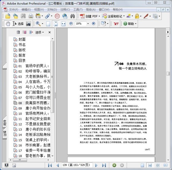 : 01 官场中的男人:被侮辱的,被损害的 02 称呼领导,确实是个很大的学问 03 大老板换秘书,不仅仅是人事问题 04 人在官场,千万不能依仗拐棍 05 与小人为伍,小人常备小鞋 06 把门前雪扫干净,你就是一个出色的领导干部 07 你可以得罪全世界的人,绝对不能得罪这一个 08 良禽择木而栖,做一个建立结构的人 09 唐小舟开始会办事了,包括办老婆 10 官场有两种人:一种是官,一种是吏 11 赵书记安全回来了,我就放心了 12 不是朋友就是敌人,官场永远没有第三阵线 13 唐小舟的处长任命正式生效 14 老板派出贴身秘书,纪委请出尚方宝剑 15 饭桌上的学问:权力就是要众星拱月 16 市长晚宴,赵德良讲起了将相和的故事 17 省委一号车给唐小舟出了一个大难题 18 替老板办事,就是让他无后顾之忧 19 扫黑:这个马蜂窝真的不能捅吗? 20 雷霆扫黑行动,就此拉开帷幕 21 理想主义的彩色外套剥去了,只留下灰色内衣 22 所谓的百分之百合理,可能是百分之百的臭牌 23 扫黑陷入困境,再论毛主席抗日之政治智慧 24 北京有个调查组下来了 25 彭清源聊大天,东一句西一句 26 多米诺骨牌效应出现了 27 赵德良成了江南官场最大的变数 28 世界上最不容易干的事,就是当官 29 组织部的提名是审慎严谨的,也是最好的 30 团结起来,争取更大的胜利