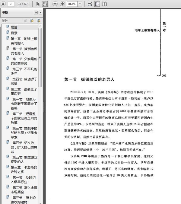 本书以世界新首富卡洛斯的成长和成功为背景,挖掘他如何从一位黎巴嫩移民之子成为墨西哥首富,最后走向世界首富。全书归纳和总结了首富的商业成功之道、商战之术和管理艺术,不仅展示了一个鲜活的卡洛斯发展轨迹,并且提炼了他的成功经验,给渴望成功的人以启发和借鉴。
