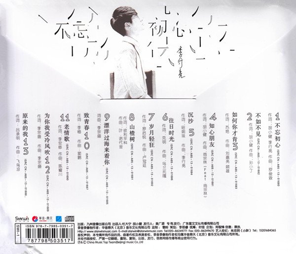 : 01. 不忘初心 02. 不如不见 03. 如何你才肯 04. 知心朋友(李行亮&雨宗林) 05. 沉沙 06. 往日时光 (原唱:谭维维) 07. 岁月轻狂 (原唱:李治廷) 08. 山楂树 (原唱:常石磊) 09. 飘洋过海来看你 (原唱:娃娃) 10. 致青春 (原唱:王菲) 11. 老情歌 (原唱:吕方) 12. 为你我受冷风吹 (原唱:林忆莲) 13. 原来的我 (原唱:齐秦)
