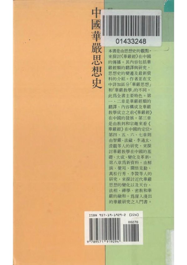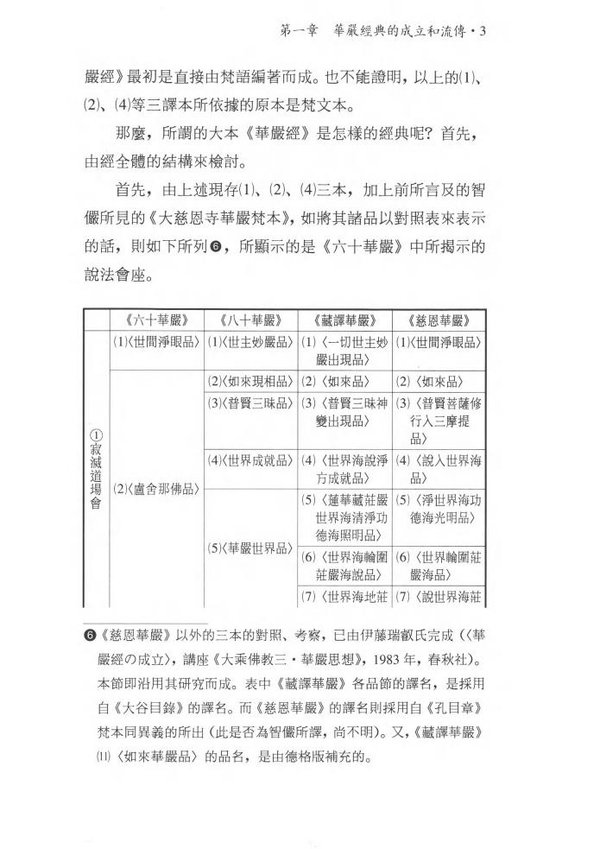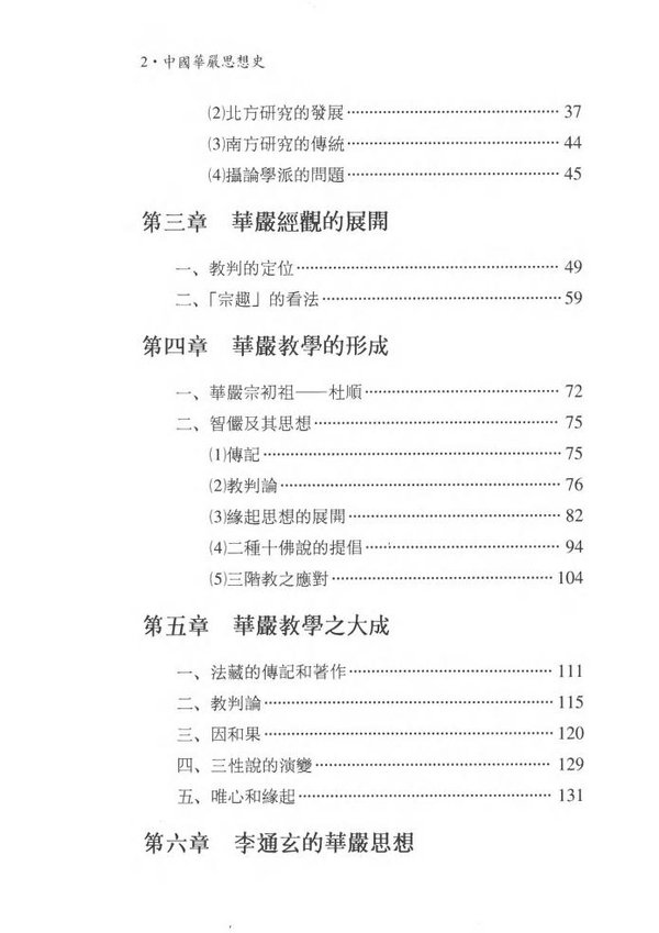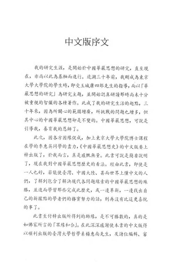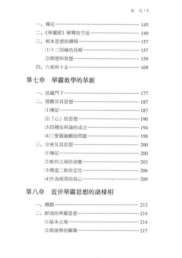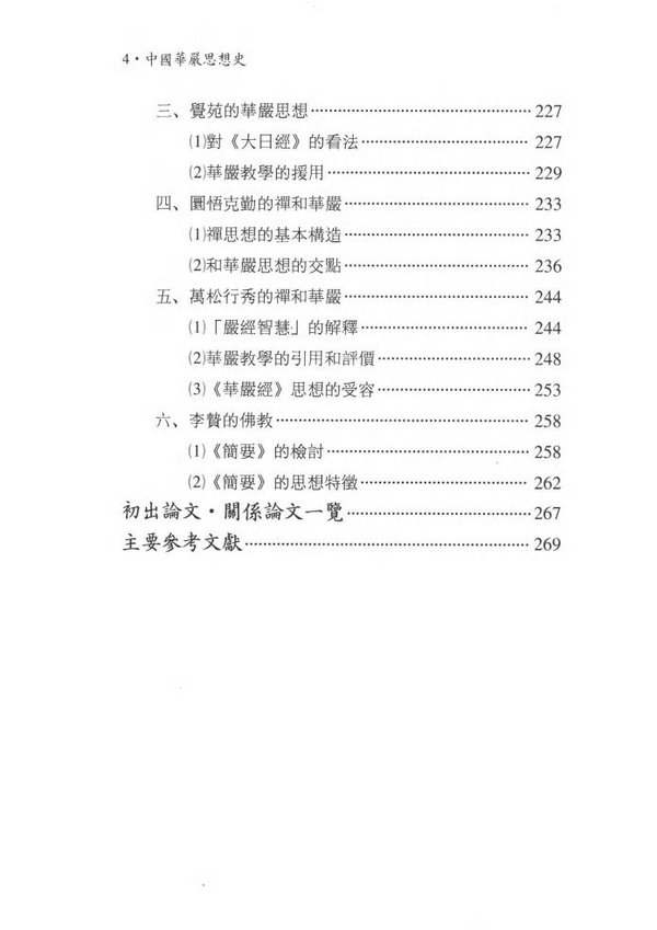 本书是由思想史的观点,来探讨《华严经》在中国的传播。其内容包括华严经类的翻译与研究,思想史的变迁及最新资料的介绍。作者并在文中详加区分「华严思想」和「华严教学」的不同,此为全书主要特色。第一、二章是华严经类的翻译、内容构成及华严教学成立之前,《华严经》在中国的发展。第三章是由教判和宗趣来看《华严经》在中国的定位。第四、五、六、七章则由智俨、法藏、李通玄、澄观等人的研究,来探讨华严教学在中国的基础、大成、变化及革新。第八章为新资料,由鲜演、觉苑、圜悟克勤、万松行秀、李贽等人的研究,来探讨近代华严思想的变化以及天台、法相、禅学、密教和华严的融和。为深入浅出的华严研究之入门书。
