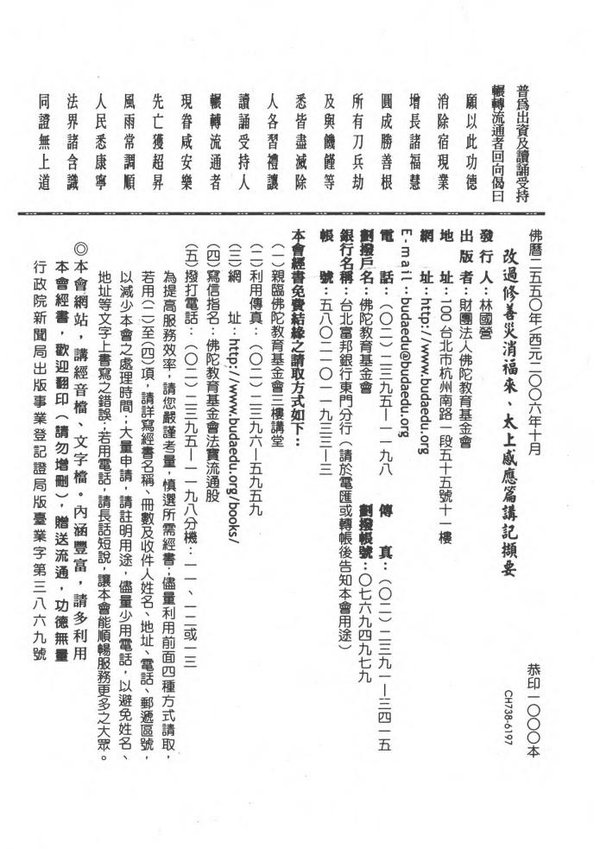 中文名: 改过修善灾消福来、太上感应篇讲记撷要