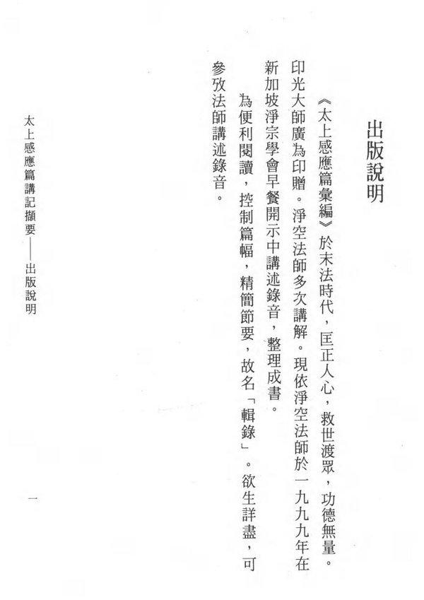 《太上感应篇汇编》于末法时代,匡正人心,救世渡众,功德无量。印光大师广为印赠。净空法师多次讲解。现依净空法师于一九九九年在新加坡净宗学会早餐开示中讲述录音,整理成书。为便利阅读,控制篇幅,精简节要,故名“辑录”。