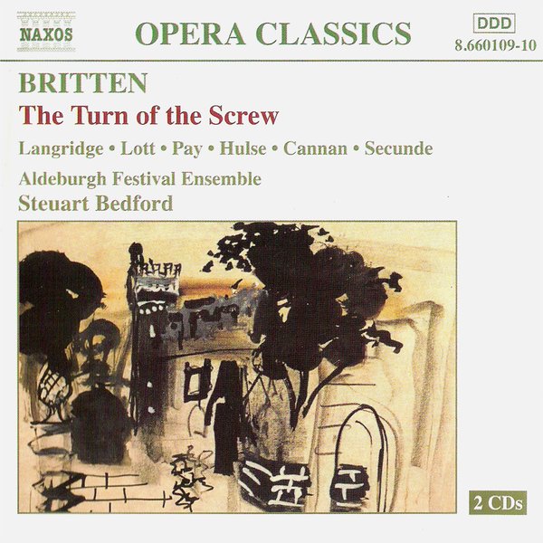 布里顿这部歌剧作品因结构紧密而深受赞扬,全剧场景都由一段依据十二音列技术写成的前奏曲(第一景 主题),后每一景为一个变奏,共十五段变奏,这些音列盘桓而上,有如旋转地拧紧螺丝。布里顿在此剧中又回到了使用室内乐团,而这部歌剧中的音乐从精致性和气氛渲染上达到了布里顿的最高水平。 音乐部分只需十二个演奏者,外加第十三位演奏者担任钢琴与钟琴部分。这部歌剧1954年9月14日在意大利威尼斯歌剧院首次公演,同年又在伦敦首演。由于作曲家本人指挥的录音(Decca)是单声道,他的忠实助手Bedford的版本可以说是立体声版本中最接近作曲家演绎风格的,Langridge和Lott作为男女主角也接近于作曲家录音中的Pears和Vyvyan, 其中Lott对女教师的刻划也许是迄今最成功的。此录音原为Collins公司制作,后Naxos以廉价出版,比原价便宜不少。本专辑企鹅评级:三星。