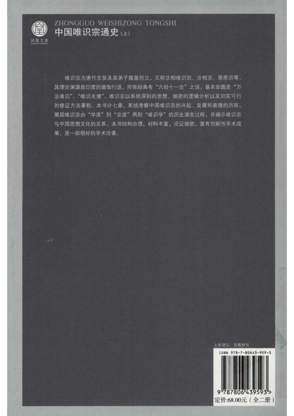 唯识宗为唐代玄奘及其弟子窥基创立,又称法相唯识宗、法相宗、慈恩宗等。其理论渊源是印度的瑜伽行派,所依经典有“六经十一论”之说,基本命题是“万法唯识”、“唯识无境”。唯识宗以系统深刻的思想、细密的逻辑分析以及切实可行的修证方法著作。本书分七章,系统考察中国唯识宗的兴起、发展和衰微的历程,展现唯识宗由“学派”到“宗派”再到“唯识学”的历史演变过程,并揭示唯识宗与中国思想文化的关系。