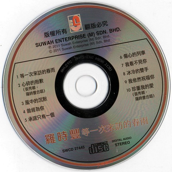 : 01. 等一次来访的春雨 02. 心碎的抱歉(张秀卿,罗时丰合唱) 03. 风中的沉默 04. 曾经为你 05. 承诺只有一个 06. 伤心的列车 07. 我看不见你 08. 冰冷的双手 09. 我依然祝福你 10. 珍重我的爱(张秀卿,罗时丰合唱)