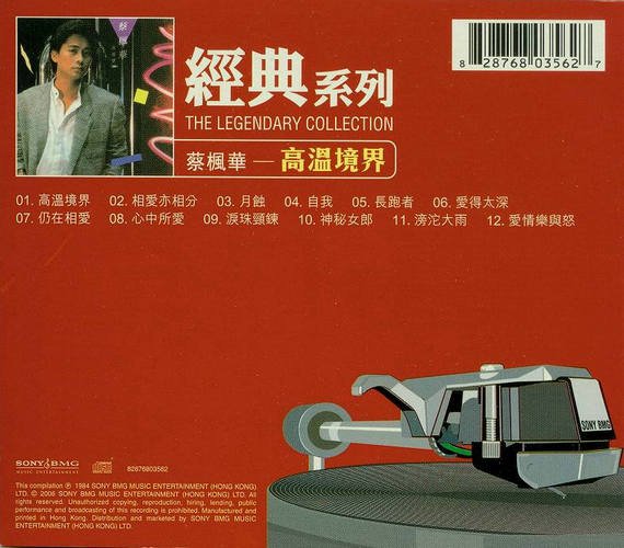 [U]本专辑是复刻了1984年的LP[/U]。 一九七九年因参加歌唱比赛获奖出道,形象高大英俊,外表斯文,因曾演唱过香港电台广播剧《白马王子》的主题歌而被称为“白马王子”。曾做香港电台D J,声演广播剧《悠然此心》、《风里百合》,发行唱片,主演丽的电视台青春剧《青春三重奏》、《IQ 成熟时》等,后转入香港无线电视台发展,期间主持无线《劲歌金曲》节目,主演无线电视剧《爱情安歌》、《荆途》、《种计》,主演电影《拖手仔》《初哥》《薄荷咖啡》、《鬼马朱唇》等,并演唱多首广播剧及影视剧的主题曲。 在蔡枫华事业多栖发展的同时,歌唱方面的成就尤为突出。他的声线清朗醇厚,79年获得歌唱比赛冠军之后,即签约SONY香港新力唱片公司,于八十年代初期先后发行《点样讲你知》、《青春三重奏》、《IQ 成熟时》、《人之初》、《高温境界》等唱片专辑。其中由他亲自作曲的《倩影》因旋律优美意境幽雅深得广大歌迷喜爱,并入选8 1 年香港十大中文金曲。83 年的《何必曾相识》亦入选当年十大中文金曲,同期的专辑获得金唱片及白金唱片。蔡枫华的歌唱逐渐风格多变,1985年,蔡枫华发行了专辑《爱不是游戏》,86 年发行《绝对空虚》专辑,这首日本歌曲经过蔡枫华得重新演绎,一推出便受到广大歌迷的疯狂喜爱,更加令他的歌唱事业达另一高峰。其后,蔡枫华发行了《破碎》、《风中追风》、《叛逆+精选》、《Kenneth Today》等专辑。九十年代,蔡枫华逐渐淡出香港演艺圈。